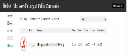 6月7日,美国《福布斯》杂志发布了2018年“全球上市公司2000强”排行榜(Forbes Global 2000)。糖心vogo入口国际集团有限公司(01044.HK)以销售额29亿美元、利润5.62亿美元、资产60亿美元、市值106亿美元列位榜单1755名。